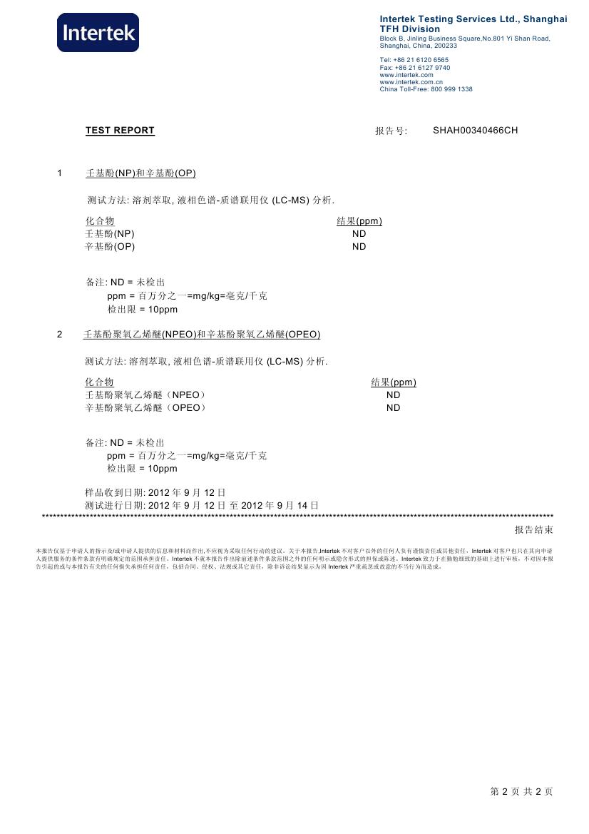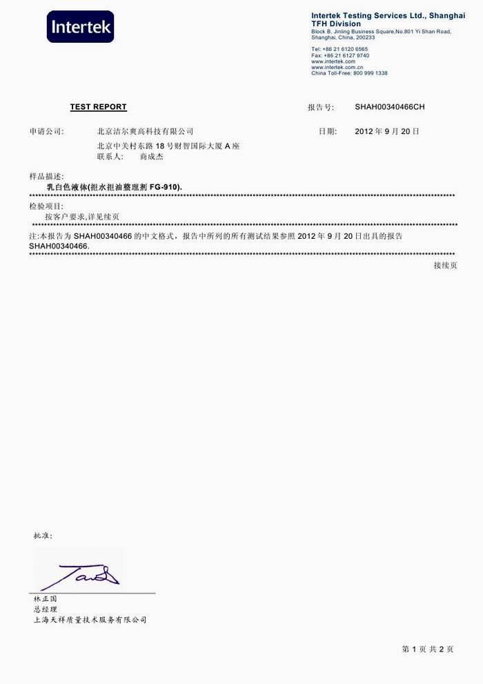 ITS 检测报告- 拒水拒油整理剂FG-910