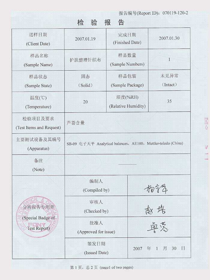 检测单位:北京普尼理化分析测试中心