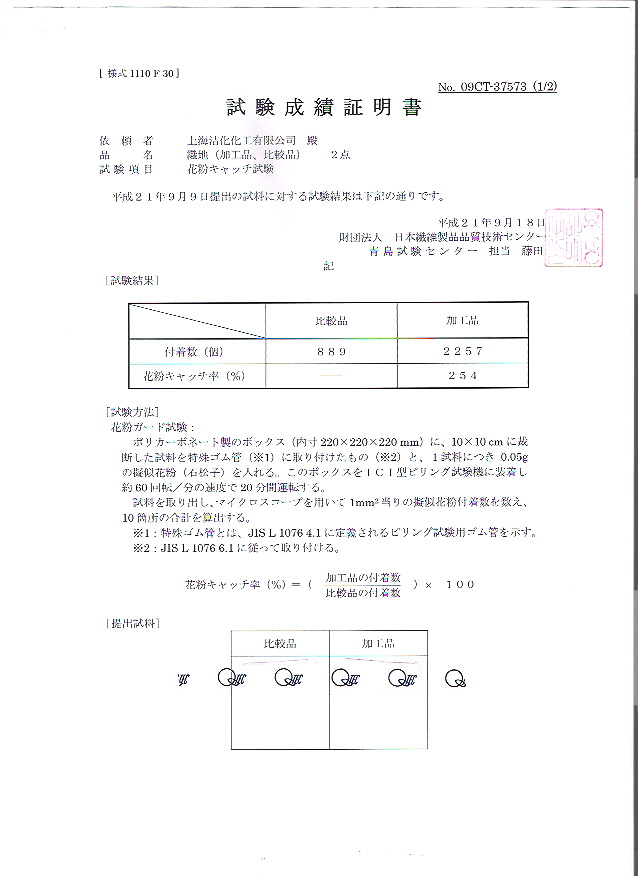 检测单位:日本纺织制品检查协会