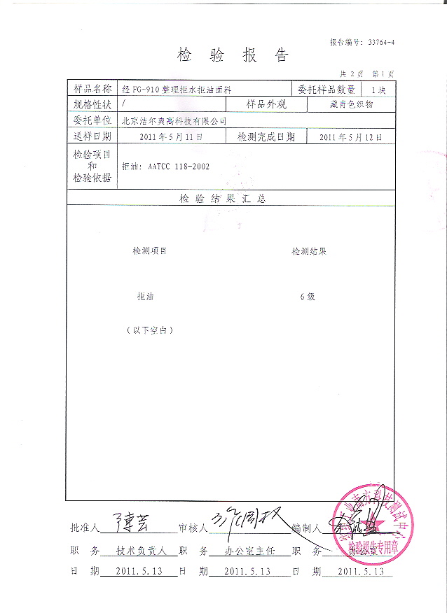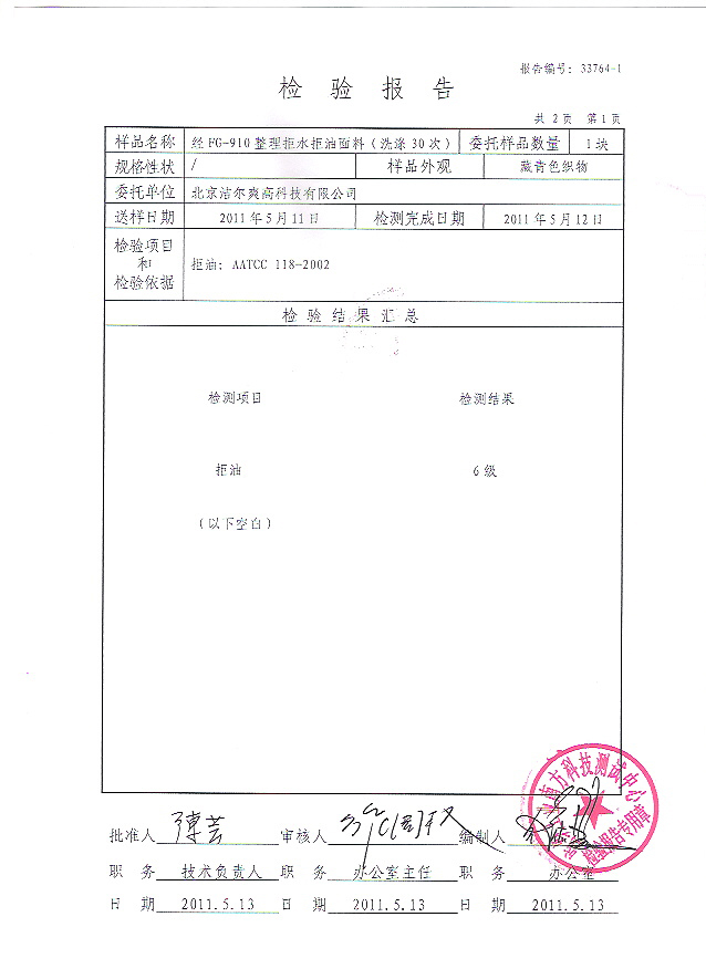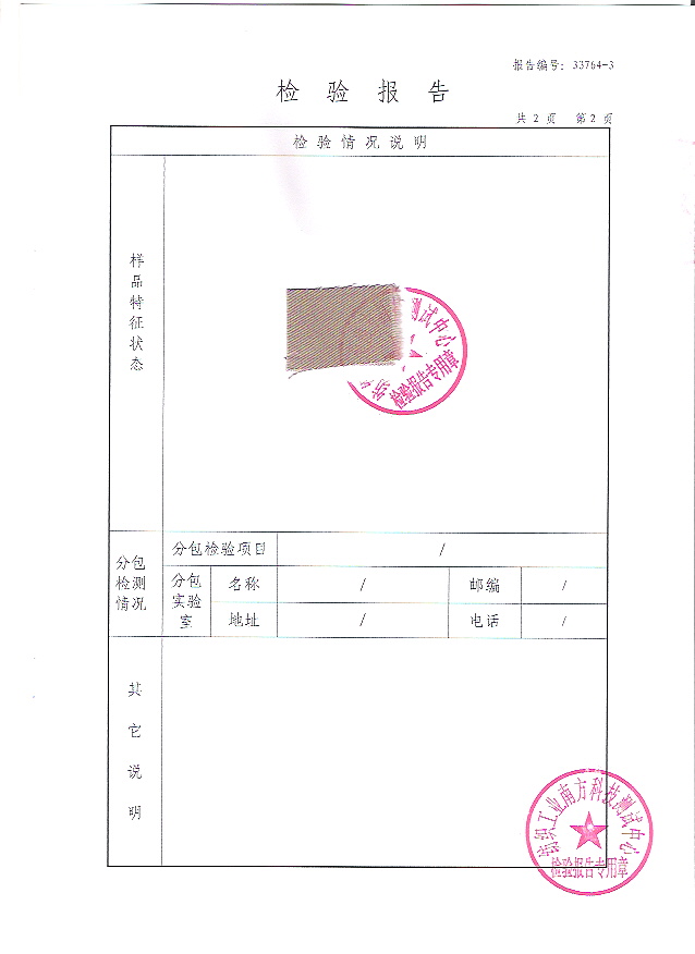 检测单位:纺织工业南方测试中心