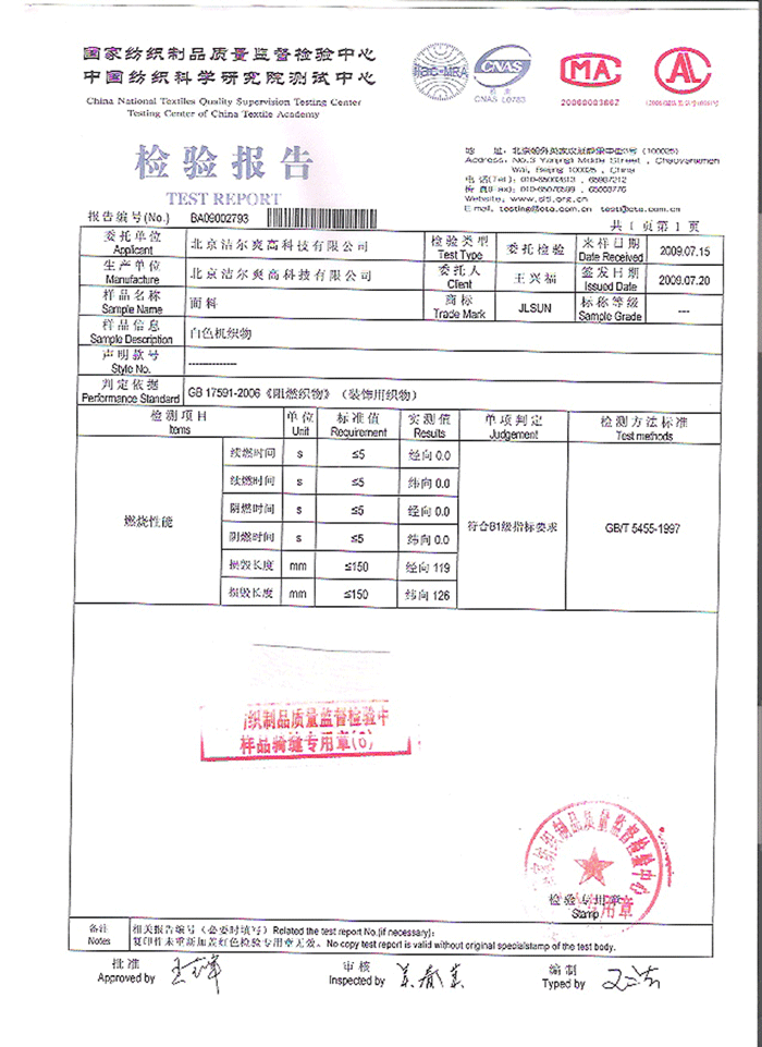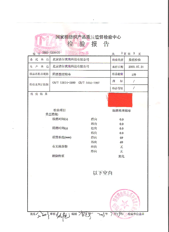 检测单位:国家纺织品质量检测中心