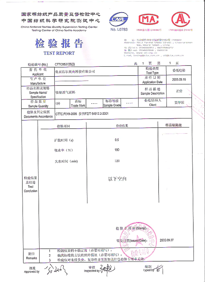 检测单位:全国纺织产品质量检测中心