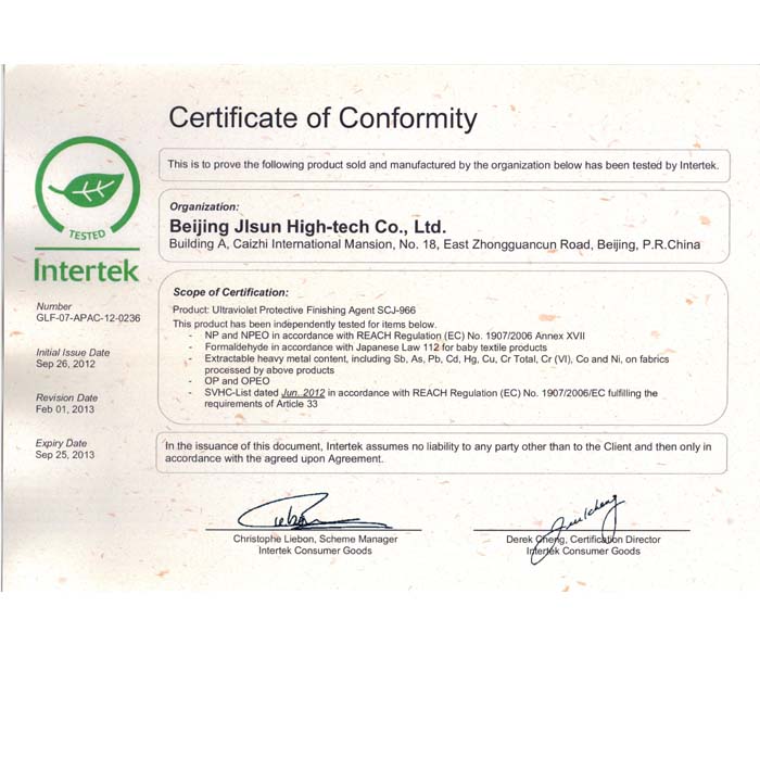 ITS 防紫外线产品生态检测报告