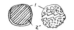 图6 微胶囊形状模型图 1-一层外膜;2-芯;3-二层外膜;4-一层胶囊。 外膜物对内芯物的比率一般约为1~70%,这个比率也随着微胶囊的制造方法而变化。 |