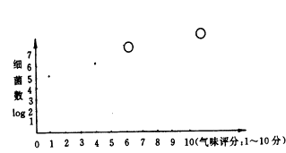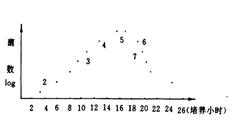 图1细菌纂殖、死亡与臭味的相关性 1- 潜伏期,2-诱导期,3-对数繁殖期,4-繁殖减速期 5-静止期,6-死亡加速期,7-对数死亡期 按职工的生活方式,早上8点离家到下午5点下班,其间9个小时,鞋中的数约可增加10万倍以上,它与恶臭的关系见图2。