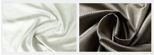 3. 镀银纤维面料:通过在尼龙坯布上镀银,所有纤维的表皮层都是的纯银层,导电性能优异。再通过表面处理技术,达到优异的抗氧化,耐水洗和柔软可贴肤的智能传导材料的要求,具有持续稳定的防辐射功能。